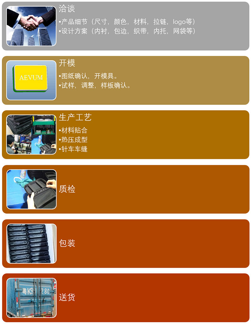 誠遠(yuǎn)箱包擁有自己的工廠,集模具開發(fā)、針車工藝車間、倉儲于一體專業(yè)EVA包生產(chǎn)廠家。位于東莞沙田,始建于2001年,已有19年EVA包生產(chǎn)制造經(jīng)驗(yàn),專業(yè)生產(chǎn)EVA包,遠(yuǎn)銷歐美等國家。